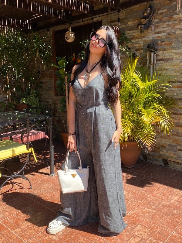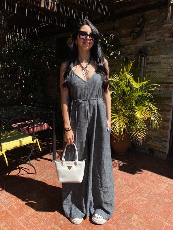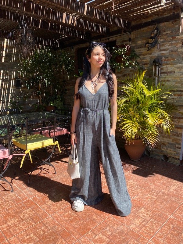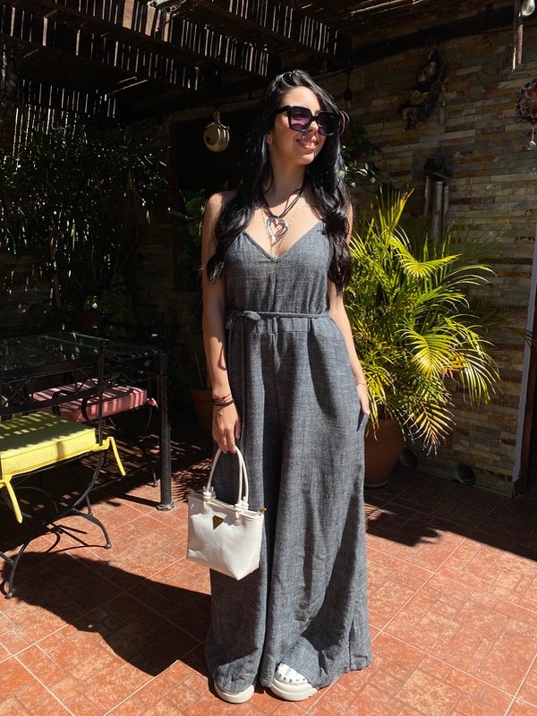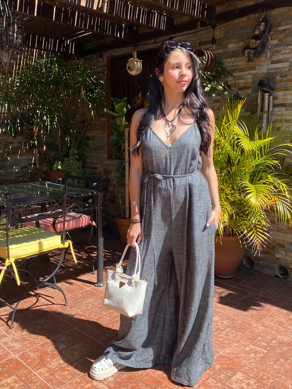 Confeccionado en Lino rustico, amplio con tira en la cintura para ajustar