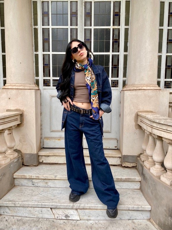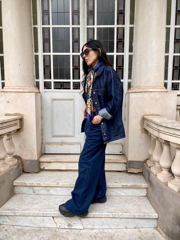combinado con camisaco iari, top juliet chocolate y pañuelo Lilian